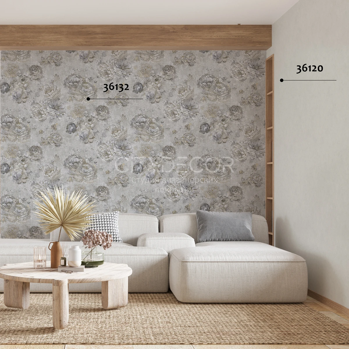 Утончённый дамасский узор тон-в-тон воплощает традиционную роскошь, добавляя стенам характер и глубину. - Фоновые обои создают атмосферу спокойствия и гармонии, уравновешивая пространство своей ненавязчивой красотой.