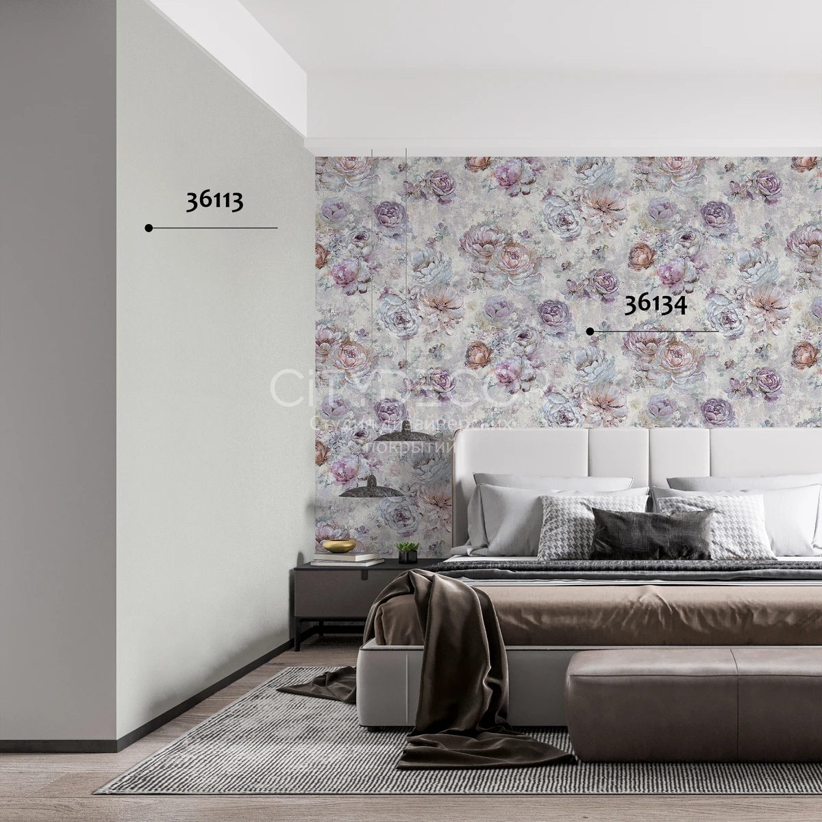 Утончённый дамасский узор тон-в-тон воплощает традиционную роскошь, добавляя стенам характер и глубину. - Фоновые обои создают атмосферу спокойствия и гармонии, уравновешивая пространство своей ненавязчивой красотой.
